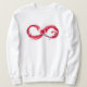 Infinity symbol of continuous stream of red wine pouring into glass wine glass on white background.