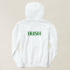 Un trébol de cuatro hojas delante y una declaración de IRISH atrás