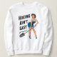 Un humorístico diseño de sudaderas femeninas con un chica de Retro Pin Up y la tipografía que dice que no es fácil acariciar