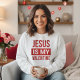 Muestra tu fe en este lindo y elegante suéter que proclama "Jesús es mi Valentín" en un audaz guión rojo.