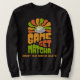 Fun GAME SET MATCHA Fun Latte Drinker sudadera con TEXTO de PERSONALIZABLE, para bebedores de té de café con leche matcha a los que les encanta el tenis. El diseño muestra una tipografía de estilo retro en colores vibrantes, con una redacción que dice GAME SET MATCHA y WORTH PLAYING FOR. Esta última línea es PERSONALIZABLE, por lo que puede PERSONALIZAR con su propia redacción o borrar.