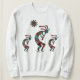 ¡Esta es una camiseta única de manga larga para mujeres de "One of a Kind"! Cuenta con tres bailes suroeste de Kokopelli y una flauta bajo la luna.