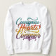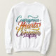 La frase "Corazones valientes conquistadores" está escrita en un llamativo tipo de letra calligráfica, de varios matices, representada sobre un fondo transparente, que captura la esencia del coraje.