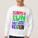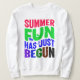 frase divertida Summer Fun acaba de empezar con letras atrevidas y coloridas, perfectas para poner el ánimo a una temporada llena de diversión.