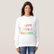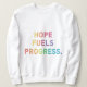 La frase "La esperanza impulsa el progreso" se muestra en una vibrante gama de colores, que evoca un sentido de optimismo y energía. La tipografía dinámica y la paleta de colores audaces enfatizan el poderoso mensaje de cómo impulsar el cambio y el avance positivos.