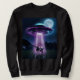 Escena misteriosa de un OVNI levantando una vaca en un rayo de luz contra el telón de fondo de un cielo nocturno con luna llena. Ilustracion perfecto para los aficionados a la ciencia ficción, y fantásticas historias sobre contacto con civilizaciones extraterrestres.