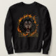 Ilustracion digital con la cabeza de un león feroz con un estilo detallado y realista. Alrededor de la cabeza del león hay un vibrante anillo de llamas. El texto "EL REY" está escrito en negrita