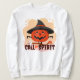 Llamada de Halloween de diseño espiritual, este diseño es perfecto para cualquier momento y no sólo para Halloween, con esta atractiva obra de arte que presenta dos calabazas de aspecto espeluznante con un hacha dagger y un fantasma.