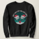 Un diseño festivo y divertido de pickleball con remo con sombreros de Santa y un fondo nevado.