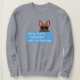 Esta graciosa sudadera frenchie presenta un lindo bulldog francés de caldo rojo con un mensaje de texto que dice "Lo siento, no puedo, tengo planes con mi francesa". Este lindo suéter también está disponible con diferentes bulldoges franceses de colores en diseños masculinos y femeninos.