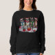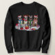 Sudadera con cuatro Bulldoges franceses con sombreros de Santa, corderos de reno, trajes de elfo y luces de Navidad. Un diseño agradable, perfecto para las vacaciones, especialmente para los Navidades, una gran fiesta en los Estados Unidos. Llamarás la atención y expresarás tu amor por los perros, creando un estilo único, cálido y alegre.