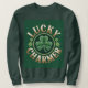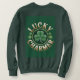 This is a forest green women's sweatshirt. The sweatshirt features a Lucky Charmer Shamrock design on the front and back. The sweatshirt is a 10 ounce cotton-poly blend with a 100% cotton face. The sweatshirt has set-in sleeves and double-needle stitched neckline, armholes and bottom band for long-term durability. This sweatshirt could be worn for St. Patrick's Day and other occasions.