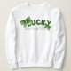 Celebre el Día de San Patricio con estilo con este acogedor suéter de la suerte con un arco de croqueta a rayas y la palabra "Lucky" maravillosamente escrita en negrita letras verdes del bloque. Diseñado en un verde irlandés vibrante, este suéter es perfecto para difundir la alegría festiva irlandesa en el Día de San Patricio. Hazlo especial personalizándolo con el nombre de tu ser querido en caligrafía de escritura. ¡Es un regalo único y atento para esa persona especial que trae suerte a tu vida!