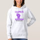 Se trata de una Hoodie de Sensibilización sobre la Cinta Púrpura LUPUS WARRIOR con TEXTO de PERSONALIZABLE para mostrar su apoyo a la toma de conciencia sobre esta enfermedad. El diseño muestra un puño púrpura levantado aferrándose a una cinta lila con un contorno cardíaco en el fondo. Esto representa mostrar solidaridad y fuerza a sus seres queridos o amigos que están luchando contra la enfermedad. El TEXTO del PERSONALIZABLE dice 'LUCHAR CONTRA LA BUENA LUCHA DE LA FE', que se basa en 1 Timothy 6:12 y puede PERSONALIZARSE con su nombre o el nombre de su organización o grupo de apoyo. También podría cambiar la redacción para que diga "Usé PURPLE POR MI BESTIE" (o puede borrar). También en negro.