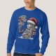 Camiseta festiva de Santa Claus fumando una pipa con cajas de regalo de Navidades caprichosos, rodeadas por una atmósfera festiva y nevada
