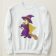 Camisas gráficas de bruja adorables con mi adorable bruja en su gorra morado y vestido con capa amarilla de flujo, volando sobre su escoba. Diseño lindo para Halloween. Obra de arte de Sally Lannier/Dibujos de diseños de sueños pintados