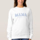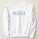 Celebrate mom and customize for any year! Chunky retro lettering featuring the word "Mama" with a beautiful blue floral design in the French tradition of toile pattern. Perfect for moms who love timeless yet trendy aesthetics, this sweater makes a thoughtful gift for baby showers, Mothers Day, birthdays, and more. A chic and sentimental way to honor the special moms in your life!