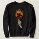 Sudadera Mano de esqueleto con flor de rosa en llamas
