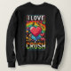 El diseño de la camiseta de "I Love My Crush" presenta un tema juguetón y romántico con letras atrevidas y vibrantes. La frase "I Love" está escrita en un gran tamaño, llamativo, con la palabra "Crush" en un estilo diferente, posiblemente con un símbolo del corazón o adornos juguetones. Los colores vivos como el rojo o el rosa para los elementos del corazón contrastan con el fondo, lo que lo convierte en un diseño divertido y juvenil. El conjunto es alegre, perfecto para expresar afecto con un toque de fantasía.