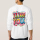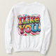 El diseño de la camiseta "I Like You" incluye una frase juguetona, dibujada a mano, en letras atrevidas y extravagantes. El texto es el punto focal, escrito en un tipo de letra informal y amigable con colores vibrantes, dándole una sensación divertida y accesible. Alrededor de las palabras, hay pequeños garabatos como corazones, estrellas o caras sonrientes para realzar el mensaje positivo y de buen corazón. El diseño se siente fresco y joven, perfecto para difundir positividad y buenas vibraciones.