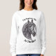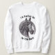 "Prefiero estar en el granero" es el sentimiento que acompaña este boceto de caballos vintage. Un gran caballo oscuro, con una larga manga, se golpea la cabeza a través de una herradura en el centro de esta sudadera. Curvado por encima y por debajo de este grabado en blanco y negro es el texto que se puede personalizar fácilmente si lo desea.
