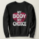 Diseño de texto con la cita "Mi cuerpo, mi elección". Defender la dignidad humana, la igualdad de género, los derechos de la mujer y la autodeterminación.