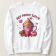 La taza rosa de Kawaii con acentos cardíacos, la nata batida, el donut y el rosa—romántico motivo de panadería celebrando el primer amor. Rica paleta rosa, brillante sombra, encanto alegre para ropa y accesorios.