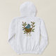 Un monarca de napa negra se adentra en su acogedor nido entre ramas frondosas, rodeado de vegetación tropical. El ilustracion detallado captura las suaves plumas azules del ave y la exuberante vegetación de su casa de la jungla.