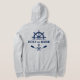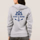 Su nombre de barco personalizado u otro texto con un ancla náutica personalizado, remos cruzados, una rueda de barcos - casco y estrellas de azul marino sobre una capucha gris de las mujeres.