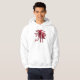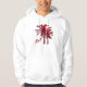 La sudadera con capucha blanca con una imagen de las palmeras florales rojas del batik de Christmassy con "Bali" imprimió al lado de ellas en escritura roja. Vea la colección entera de la ropa del retratamiento de Bali en la sección ESPECIAL de los favores de fiesta de los TACTOS el |.