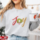 Camiseta de los Navidades de la Alegría captada a mano con una cortina de agua dibujada a mano y arco con tipografía adorable y colorida. Perfecto para llevar toda la temporada. Arte original de Leslie Larson.