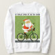 Suéter de las vacaciones en bicicleta con un divertido ciclista de Santa Riqueza en bicicleta a través de la nieve.