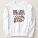 Esta sudadera blanca capta el espíritu festivo de los Navidades con un toque de encanto retro. En el centro del diseño, encontramos un trío de gráficos de colores pastel: un adorno clásico y un alegre regalo navideño. En la parte superior de estos encantadores gráficos está la frase "Dama de Navidades locos" en un juguetón tipo retro burbuja. El texto es caprichoso y llamativo, agregando un toque de humor y personalidad a la sudadera. Jugativamente celebra el entusiasmo desenfadado de alguien por todos los Navidades. En general, este suéter es una deliciosa mezcla de colores festivos y estética retro, lo que lo convierte en la prenda perfecta para todo aquel que ame disfrutar de la alegría y el placer de las vacaciones con un toque de fantasía. Es una manera divertida y elegante de mostrar tu espíritu Navidad.