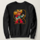 Un lindo estilo retro de los años 50, este pequeño vaquero occidental está jugando con su lazo de cuerda. Un tema occidental para los niños. Lleva puesto un gorra vaquero, un lindo traje occidental, y se prepara para arruinar una vaca.