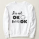 Diseño divertido y significativo con un triste emoticono y la cita "No estoy bien, pero está bien".