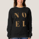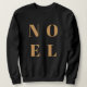 Sencillo, elegante y audaz "Noel" cita el arte de las mujeres sudaderas navideñas con elegante dorado sobre un lujoso fondo negro en un estilo moderno minimalista tipográfico. El saludo se puede personalizar fácilmente para un diseño único y personal de vacaciones que destaca entre la multitud.