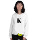 Manténgase elegante y acogedor con nuestra sudadera blanca personalizado, con un diseño de tipografía audaz inicial con el nombre de un personalizado monograma. Esta tipografía audaz muestra la letra "K", que usted puede personalizar fácilmente reemplazándola por su propia inicial. Perfecto para crear una pieza única, este sudadero es ideal para resaltar su nombre carta inicial. Para el personalizar, simplemente haga clic en "Personalizar", escriba la primera letra de su nombre y observe cómo su creación cobra vida. Aprovecha la elegancia de la moda personalizada con esta sudadera elegante y versátil que combina confort y estilo sin esfuerzo.