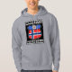 Noruego Minnesotan American Hooded Top. Un diseño al estilo de una señalización clásica de la vía estadounidense, que combina las banderas de Noruega y Minnesota en un escudo.