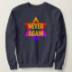 La Marina NUNCA MÁS RECUERDA el Holocausto, sudadera que muestra la estrella multicolor de David y la redacción amarilla NUNCA MÁS. Muestra tu apoyo durante Yom HaShoah y el Monumento al Holocausto. Elementos coincidentes disponibles.