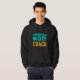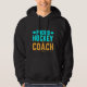 Entrenador de hockey hoodie con texto azul acuático y dorado dice Orgulloso entrenador de hockey.