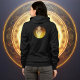 "Oro de resiliencia luminescente" presenta una figura radiante rodeada de luz dorada que simboliza la fuerza interna, el despertar espiritual y el equilibrio. La posición dinámica transmite confianza y empoderamiento, mientras que un símbolo de mandala sobre la figura representa mayor conciencia y crecimiento espiritual. Los tonos dorados y naranjas que nadan reflejan calidez, optimismo y resiliencia, enfatizando la adaptabilidad y la transformación. La figura central en medio de giros abstractos encarna la calma y la concentración en tiempos difíciles, transmitiendo un mensaje de fuerza interior, claridad y empoderamiento personal.