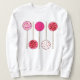 La sudadera tiene una hilera de copas de pasteles rosados. ¡Genial para el El día de San Valentín!