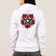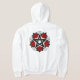 Pentagrama negro con estampado, decorado con rosas rojas florecientes con hojas sobre fondo blanco. Estilo tatuaje.