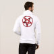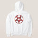 Rojo, invertido, pentagrama texturizado en círculo, sobre fondo blanco. Símbolo oculto. 666