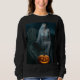 Una creación de Halloween que deja mucho que desear - protagonizada por nuestra novia fantasmal encaramada en su eterno trono, cubierta de un velo malvado, con su sombrío compañero felino y un centinela de calabaza resplandeciente a sus pies. Es puramente persuasivo para los que ansían un bocado de lo macabro. No asusten esta oportunidad - ¡tomen esta declaración de moda rebosante de glamour en el cementerio, y dejen que los épicos temores empiecen incluso antes de que empiece la fiesta! Este diseño es transferible a muchos otros artículos de su elección, como invitaciones, decoración en casa, requisitos de fiesta, banners, etc. Simplemente hurga por nuestra tienda Zazzle/virtuoCity o busque "Halloween" ahí. © Tan Choon Hong. Todos Los Derechos Reservados.