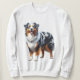 ilustracion artístico de un perro pastor australiano tricolor de pie feliz