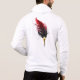Pluma de fuente antigua de dibujos artísticos adornada con una pluma roja oscura sobre fondo blanco.