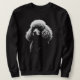 Poodle Dog Head Dark Art Black Sweatshirt. Embrace the dramatic monochrome look! This stylish men's pullover features an intense Poodle portrait and dark aesthetic. Ideal gift for him or any Poodle owner and dog lover. Perfect graphic sweater for gothic or dark art fans. High-quality men's apparel on a black sweatshirt.