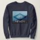 Un paisaje digital de Walker Lake en Nevada. En el centro de la obra de arte hay un diamante azul. En el centro de esta forma está el año de la condición de estado, 1864, en blanco. Hay un lagarto de cola de cebra trepando en forma de diamante. En grandes letras blancas, NEVADA, se sienta al final de la obra de arte. Hay una simple frontera para encuadrar el arte.