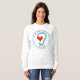 El Síndrome de Dehiscencia Superior del Canal es un síndrome en el que existe un adelgazamiento o apertura del hueso en el oído interior. Las personas que padecen esta enfermedad pueden sufrir un tinnitus pulsátil que es donde pueden oír un sonido de latido o latido en sus oídos las 24 horas del día. El enfermo puede parecer estar bien, pero el manejo de los síntomas es difícil. Por lo general, sus seres queridos o empleadores no son conscientes de las luchas que enfrentan. Estas luchas pueden incluir, entre otras, la pérdida del sueño, la depresión y los problemas de equilibrio. Este suéter ayudará a aumentar la conciencia sobre esta mal entendida condición. Presenta un lóbulo de oreja con un diseño cardíaco para representar los sonidos del latido que la gente con SCDS escucha. El color aguamarina con puntos de polka blancos es el patrón oficial de la cinta de sensibilización de SCDS.